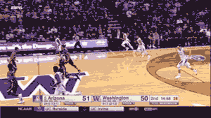 - Great body control, handles contact well, and finishes with both hands at the rim.